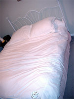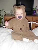 That's our little bear! He wore that to church today and everyone thought it was his Halloween costume, but it wasn't. It's just an adorable outfit I found for him on clearance a few weeks ago. I told Dean I want an outfit like that, cause it's fleecy and looks so comfy. Caleb seems to think it's comfy too. The other pic, as if you werent smart enough to tell, is off our bed, and our new down comforter! We love it so much. It was definitely a great anniversary gift. Unfortunately today as Dean and I settled in for a nap under our nice comfy blankets Caleb decided he was done napping and was ready to play. I thought it was odd that we were able to nap on a Sunday afternoon, just couldnt figure out why it seemed so odd to be laying down to nap when Caleb's cry on the monitor swiftly reminded me why parents never get any sleep!