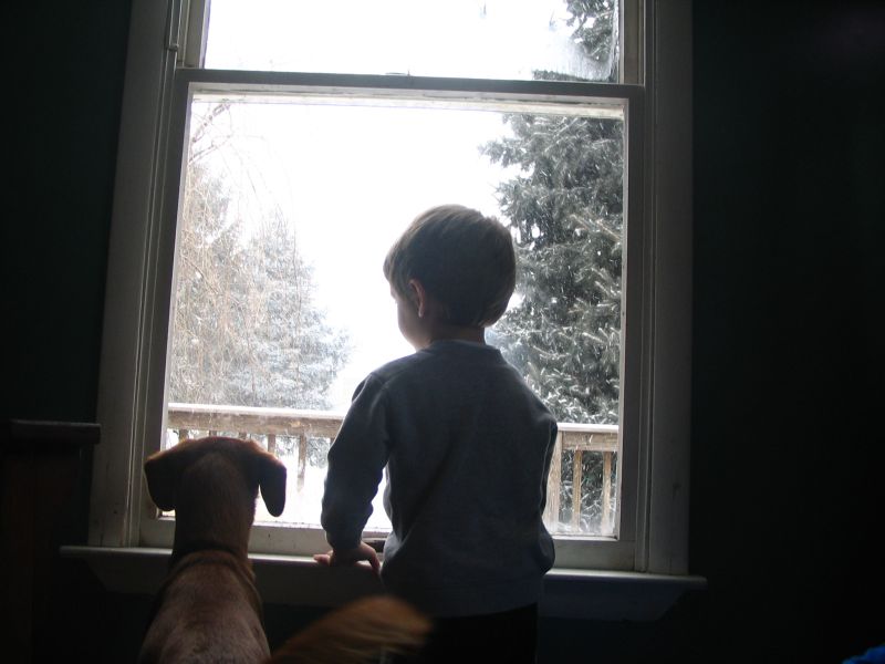 Why so many pics today you ask? Well as you can see in this pic, it’s snowing. this is our first snow event of the season and the kids and I are hanging out inside all day. I’m glad I have no where to be today, but I wish Dean were home since I dont want to drag the baby out in the snow just yet. I might if Dean were here to help out but for now I’m bringing in bowls of snow for Caleb to play with. The dog is barking at every freakin snowflake and she wants to be out but when I put her out she barks non stop too. I cant win with her today.