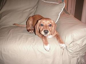 Did I mention that the pup is housebroken and very well behaved? I am so happy with how our first day w/ her has gone. And since I forgot to mention it, she's a beagle terrier mix. She is about 13 lbs now and we were told she'd get to be around 20, but she's kind of taller than we thought she would be.