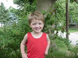 Now, look at my adorable son!! and if you look closely behind him in the bush you can see tons of cicadas!!!